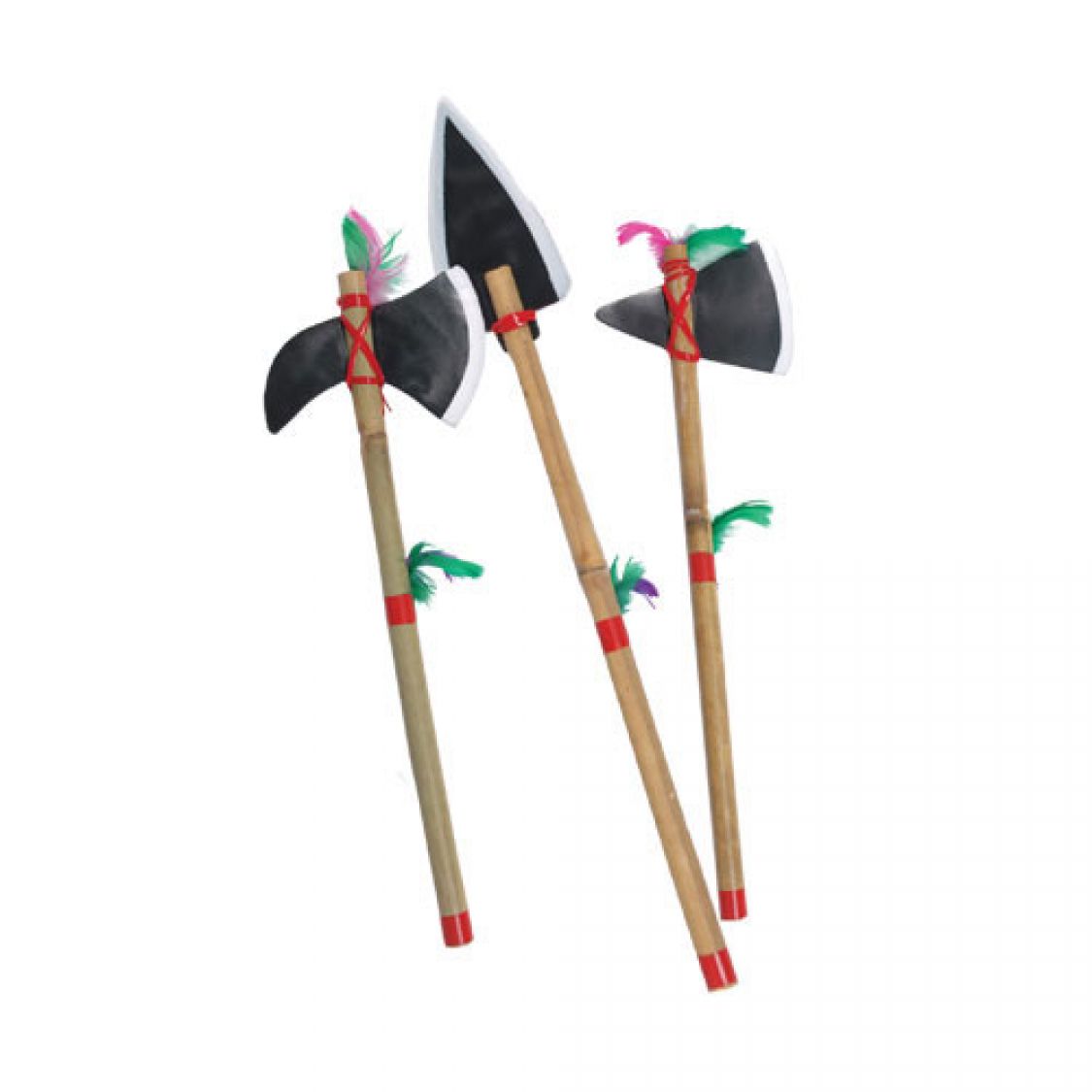 Pour compléter comme il se doit votre déguisement d'indien ou d'indienne, nous vous proposons de rajouter une arme. Ces haches sont la réplique des armes qu'utilisaient les sioux pour combattre les cow boys. Ils s'agit de 3 modèles assortis qui sont vendus à la pièce, vous ne pouvez pas choisir le modele.