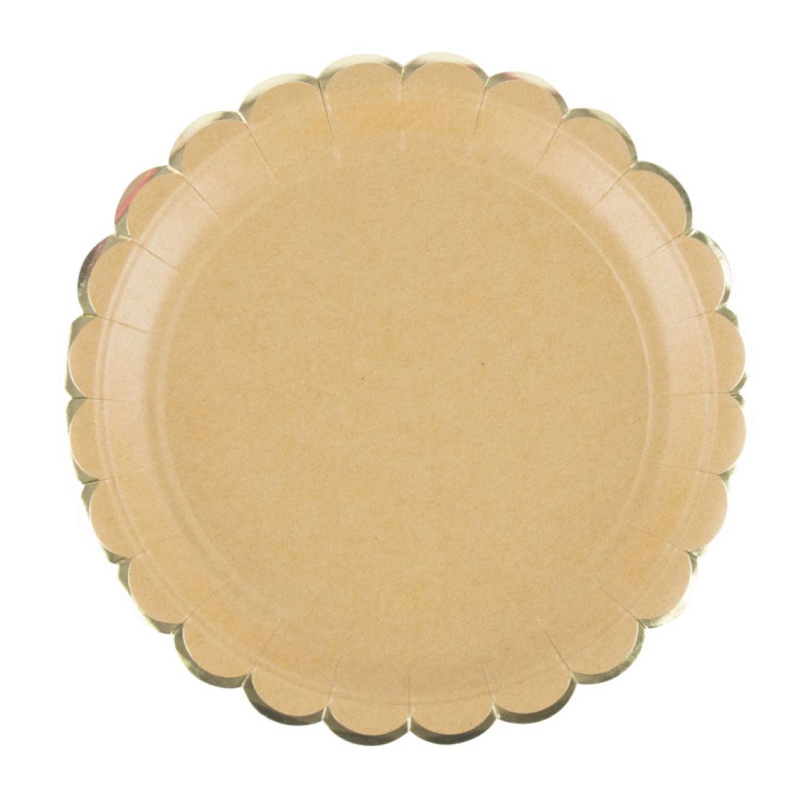Ce lot de 8 Assiettes jetables sont en carton kraft. Ce sont des assiettes carton de forme ronde, festonnées avec un liseret or tout autour. Cette gamme d'assiette ronde est proposée dans plusieurs coloris unis. La ligne de ces assiettes à usage unique, apportera de l'élégance à vos tables de fête, plus particulièrement , un jour de l'an, un réveillon, des fiançailles, un mariage, un anniversaire ou tout autre évènement. Optez pour la vaisselle jetable !