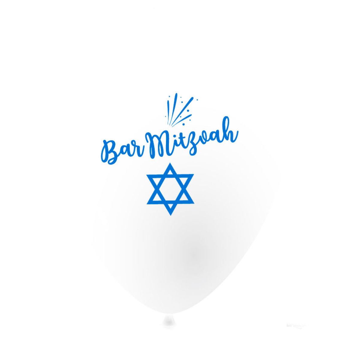 Voici un ballon en Latex blanc ou bleu, imprimé d'une Etoile de David et du texte Bar Mitzvah en bleu ou blanc. Ces ballons de baudruche sont vendus en sachet de 10 pièces, il sont 100% Latex et 100% biodégradable. Ces ballons Bat Mitzvah seront parfaits pour faire le décor de votre cérémonie, à l'occasion de la majorité religieuse de votre garçon pour ses 13ans, moment important dans le Judaïsme.
