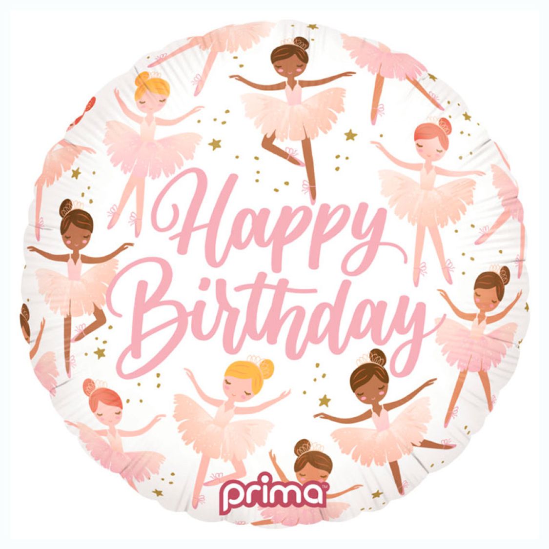 Le Ballon Birhday danseuses est un ballon en aluminium rond, à fond blanc avec des petites danseuses roses imprimés tout autour, encerclant le massage "Happy Birthday" . Ce ballon anniversaire trouvera aisément sa place dans tous les décors de fêtes d'anniversaire de votre fille ou de ses copines. Ces jolies danseuses en Tutus orneront vos espaces en apportant une touche de douceur, et en rappelant l'un des sport favori des peities filles.