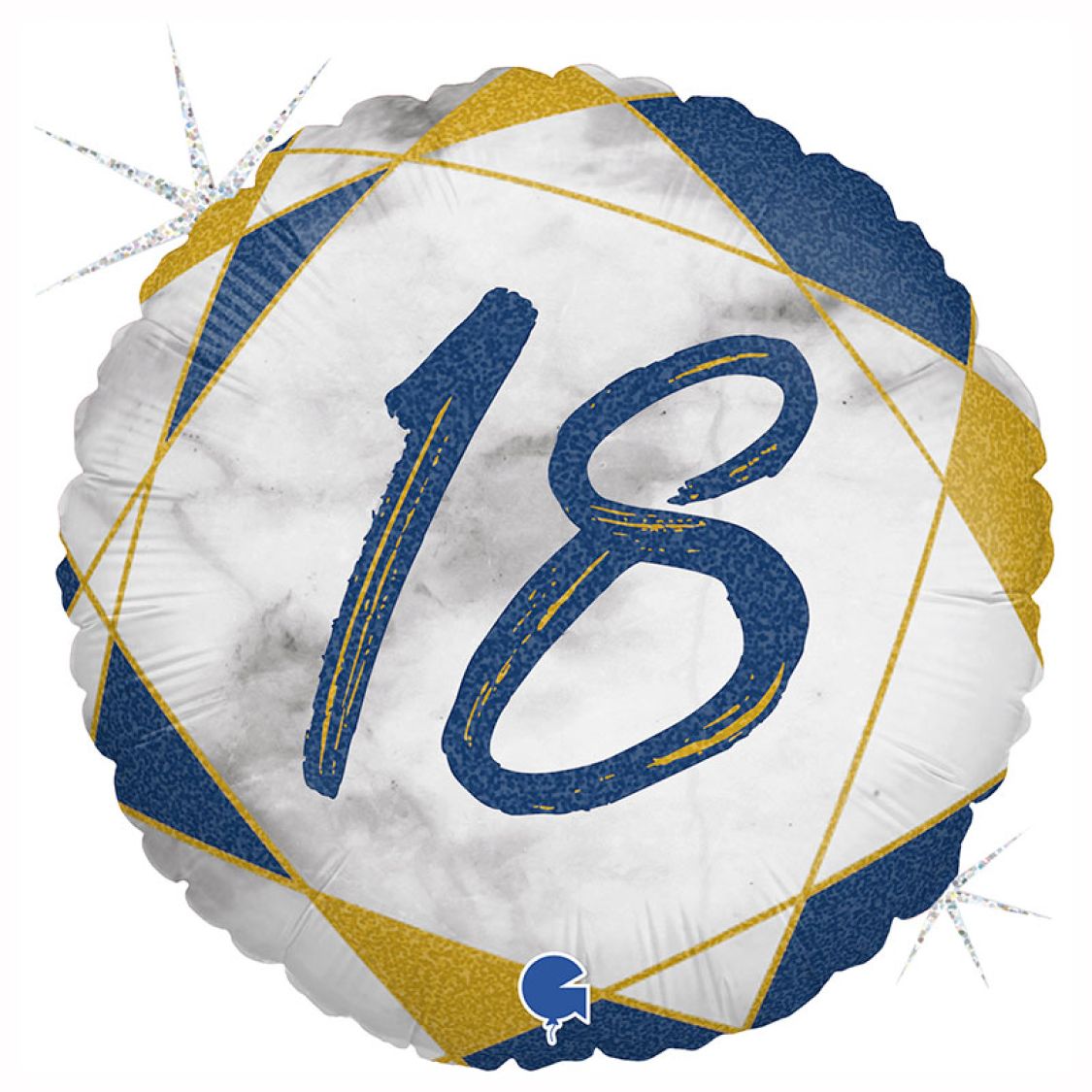 Le Ballon Marble bleu chiffre 18 est un ballon en aluminium, avec un fond marbré, et des impressions géométriques bleu et or, avec le chiffre 18 en son centre. . Ce ballon Mylar, de forme ronde vous permettra de décorer votre salle pour votre 18ème anniversaire, vous pourrez également réaliser un joli bouquet de ballons à offrir à votre ami qui fête ses 18 ans. La majorité , une anniversaire particulier !