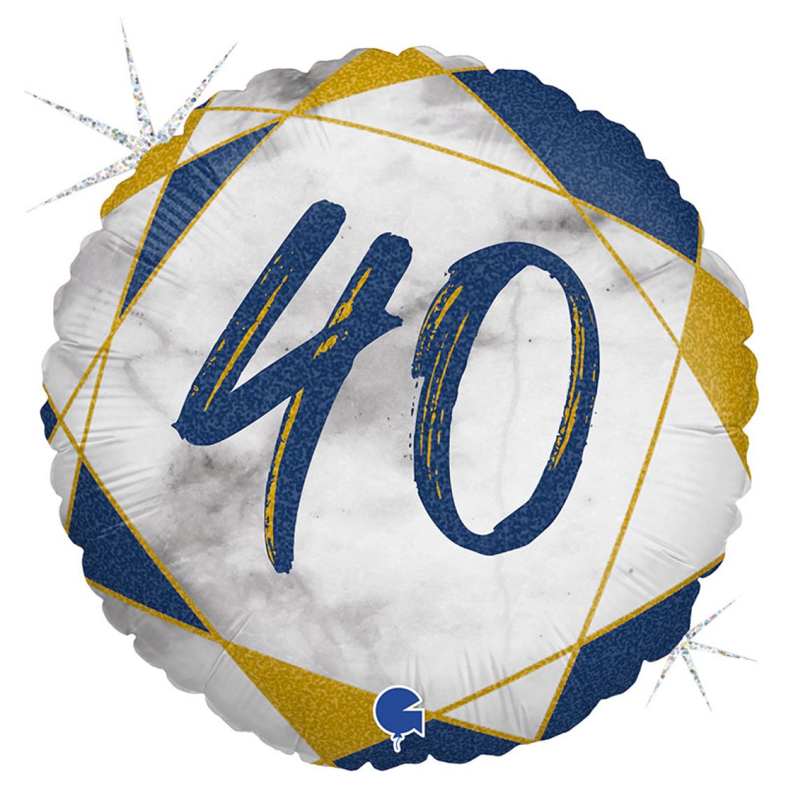 Le Ballon Marble bleu chiffre 40 est un ballon en aluminium, avec un fond marbré, et des impressions géométriques bleu et or, avec le chiffre 40 en son centre. . Ce ballon Mylar, de forme ronde vous permettra de décorer votre salle pour votre 40ème anniversaire, vous pourrez également réaliser un joli bouquet de ballons à offrir à votre ami qui fête ses 40 ans. Le bel age !