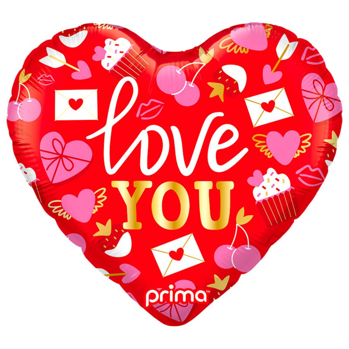 Un ballon tout rouge pour dire je t'aime à l'élu de votre coeur. Ce ballon coeur saura se dissimuler dans tous vos bouquets et dans tous vos décors de fête où l'amour a un rôle primordial; mariage, fiançailles, fête des mères ou bien la Saint Valentin. Ce joli coeur rouge passion imprimé de symboles sera à sa place pour d enombreuses occasions.  Le message "Love You", imprimé au milieur du coeur en couleurs blanc et or apportera de l'élégance à vos espaces de fête.