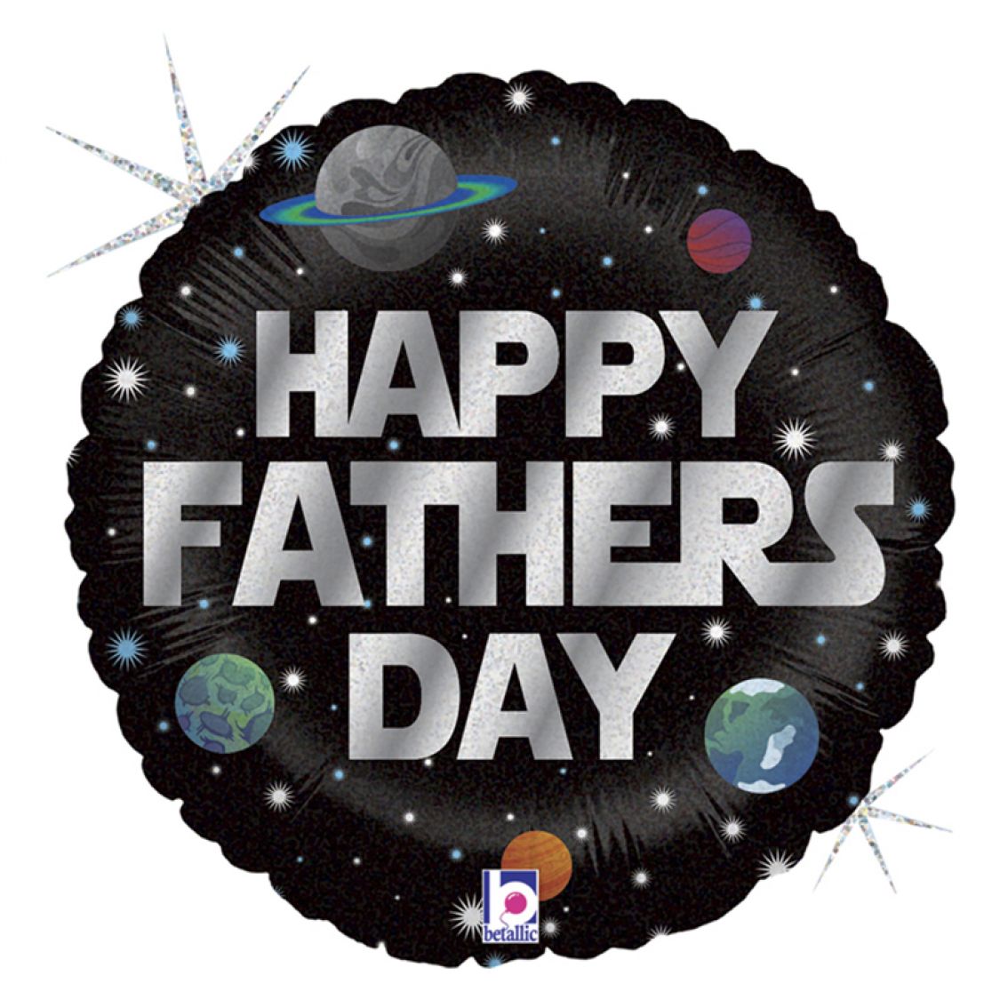 Ce Ballon Galactic Father Day est un ballon en aluminium, rond, à fond noir, sur lequel sont imprimés des planètes et des étoiles, avec le messge "Happy father day". Ce joli ballon mylar vous permettra de souhaiter une belle fête des pères à votre Papa. Vous pourrez également composer de beaux décors dans vos espaces , avec ce ballon noir, pour annoncer la fête des pères.