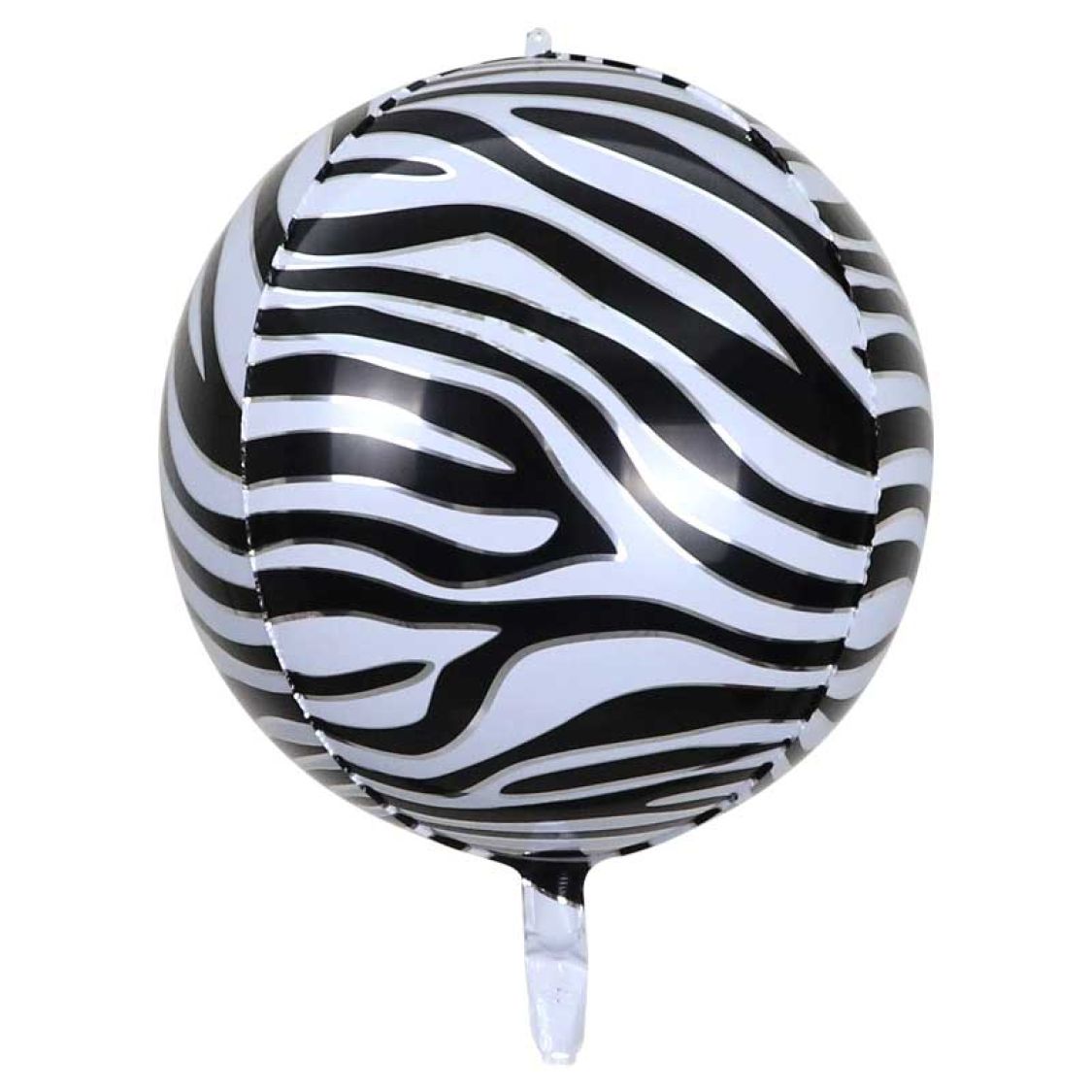 Le Ballon Orbz Sphérique Zebre est en aluminium. Ce ballon sphérique est une parfaite boule, facile à gonfler et a une durée de flottaison remarquable. Gonflé à sa bonne taille ce ballon sera complètement sphérique. Ce ballon orbz est un très beau ballon 3D de couleur noir, blanc et argent, à l'impression zèbre. Ce ballon zèbre peut rester gonflé entre 2 semaines et 2 mois, aussi bien à l'air ou à l'hélium. Ce ballon boule pourra être utilisé aussi bien pour un décor de salle de soirée à thème animaux, un décor de vitrine, ou pour agrémenter vos espaces en toute autre occasion. Faites flotter ces boules en aluminium pour rehausser tous vos décors.