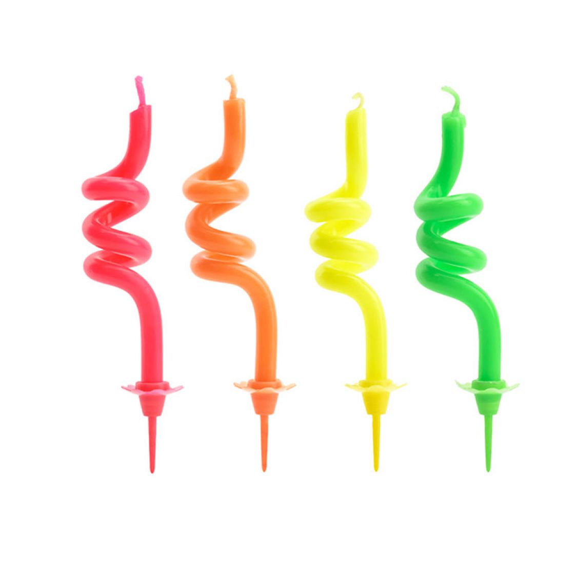 Mettez une touche de fantaisie sur votre gâteau d'anniversaire avec ces bougies tourbillon de couleurs très vives. Ces 4 bougies d'anniversaire relèveront tous vos entremets en leur apportant de la couleur.