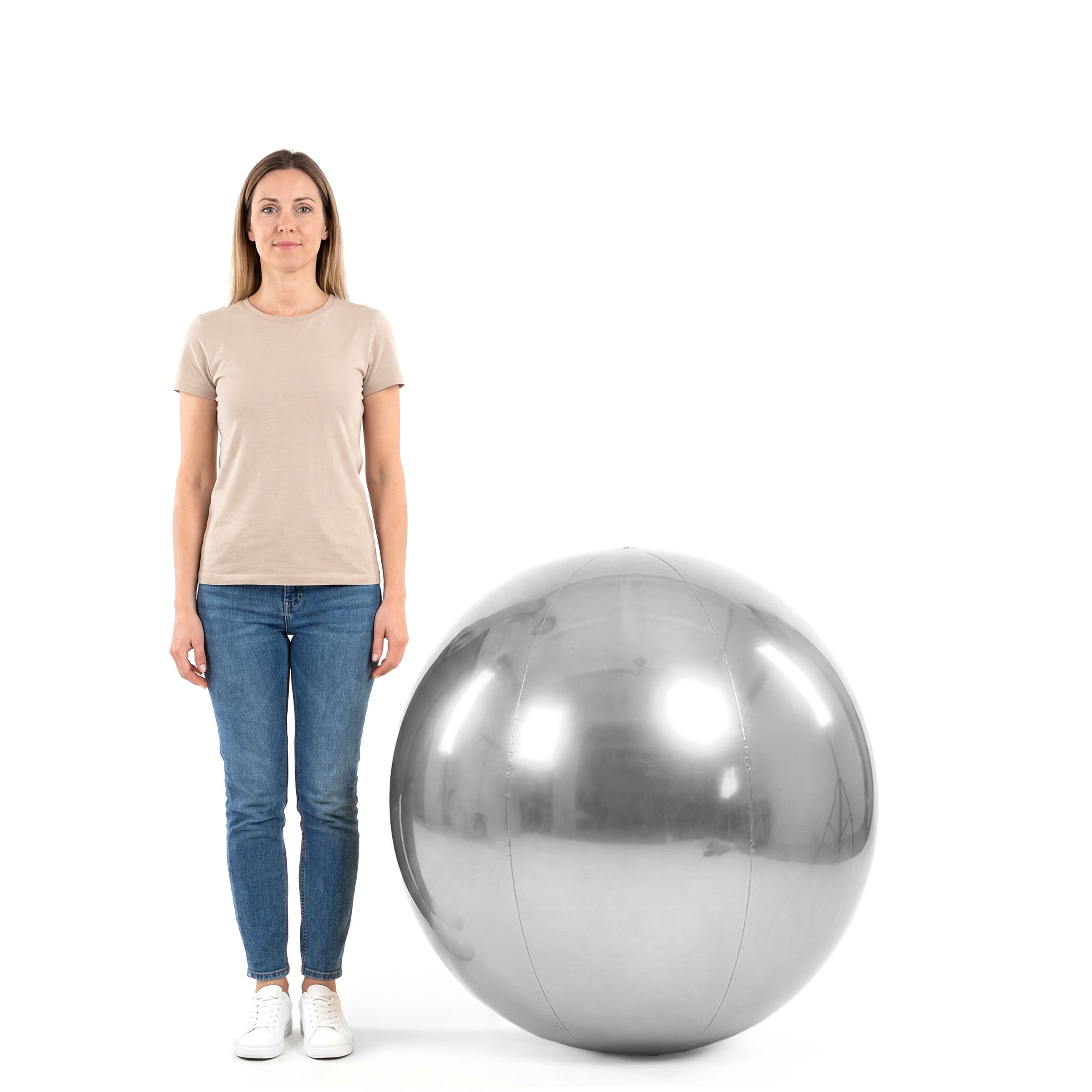 Ballons à gogo vous propose de merveilleuses boules miroir gonflable en PVC de différentes tailles et de différentes couelrus. Cette boule gonflable miroir mesure 90cm , coloris Argent. Cette boule argent est un superbe élément décoratif pour mettre en valeur tous vos espaces de fête. Cette boule miroir argentée completera facilement toute des décorations événementielles pour tous les thèmes festifs. La boule gonflable miroir reflètera la lumière pour créer une ambiance chaleureuse. Nos boules miroirs gonflables pourront etre utiliseée comme élément de décoration pour vos événements, mais aussi pour orner vos vitrines ou comme accessoires pour un défilé, un spectacle ou autre manifestation. Nouveau et très tendance cet élément gonflable va plaire à tous vos amis et clients, offrez de la lumière et de la nouveauté à vos décors de fêtes ! la boule miroir peut se gonfler et se dégonfler, elles est réutilisable et facile à mettre en place. Il vous suffit d'un gonfleur à air que vous positionnerez à la valve de la boule PVC. En quelque minute votre décor sera posé. La sphère gonflable miroir en plus d'étre un ballon décoratif , elle est un objet de décoration optique qui permet de réfracter la lumière et de créer des effets visuels dynamiques. La sphère miroir est totalement adaptée pour des événements nocturnes ou qui ont lieu dans des espaces sombres.