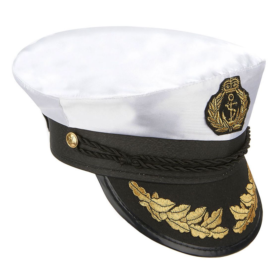 A babord ! A tribord ! A l'abordage ! Cette casquette blanche en tissu effet satiné vous permettra de vous transformer en capitaine. Sur le devant une ancre entourée de lauriers est floquée et sur la visière noire brillante se trouvent des feuilles dorées. Avec cette casquette de Marin vous alez pouvoir compléter votre déguisement de capitaine pour assister à tous les événements déguisés.