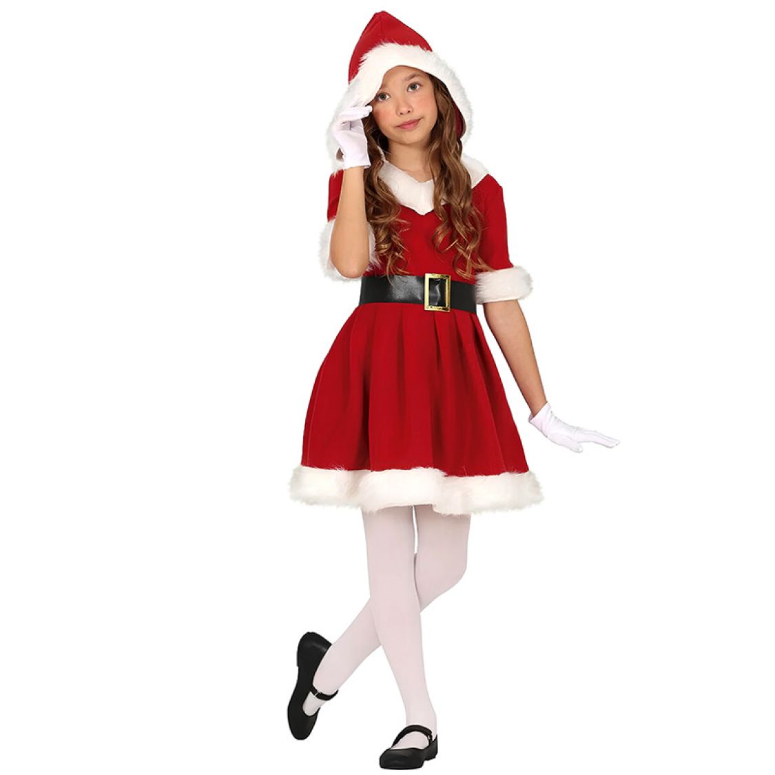 Ce costume enfant de Mère Noël à capuche pour fille se compose d'une robe rouge, agrémentée de bordures en fausse fourrure blanche. De coupe évasée cette robe de mère noël est pleine de charme. Cette robe à capuche est complété par une ceinture noire à boucle dorée, pour marquer la taille, et mettre en valur la silouette. Cette robe rouge est confortable et de belle qualité. Grâce à ce déguisement Mère Noël, votre fille pourra entrer dans le monde féérique de Noël. Joyeux Noël !