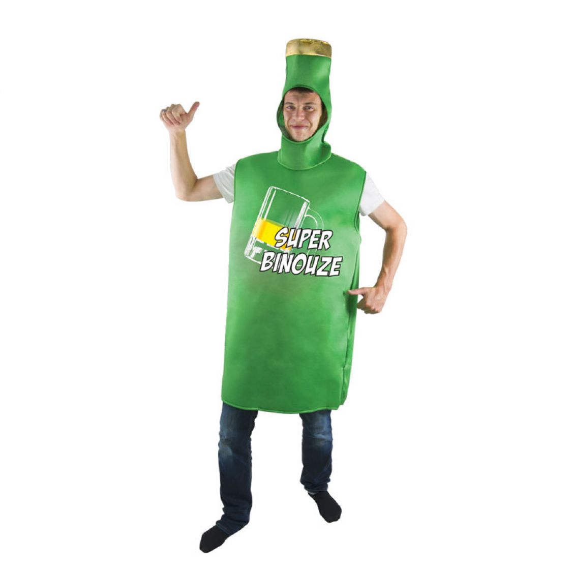 Ce déguisement très original de Bouteille de Bière fera de vous un personnage de publicité amusant et insolite ! Evidement il ne sera pas très facile de vous dandiner sur la piste de danse mais rien ne pourra vous empêcher de vous amuser ! Attention à ne pas créer d'embouteillage !Pour la fête de la Bière ou la Saint Patrick ce déguisement sera parfait Ce déguisement est composé d'une robe vert bouteille bien sur !