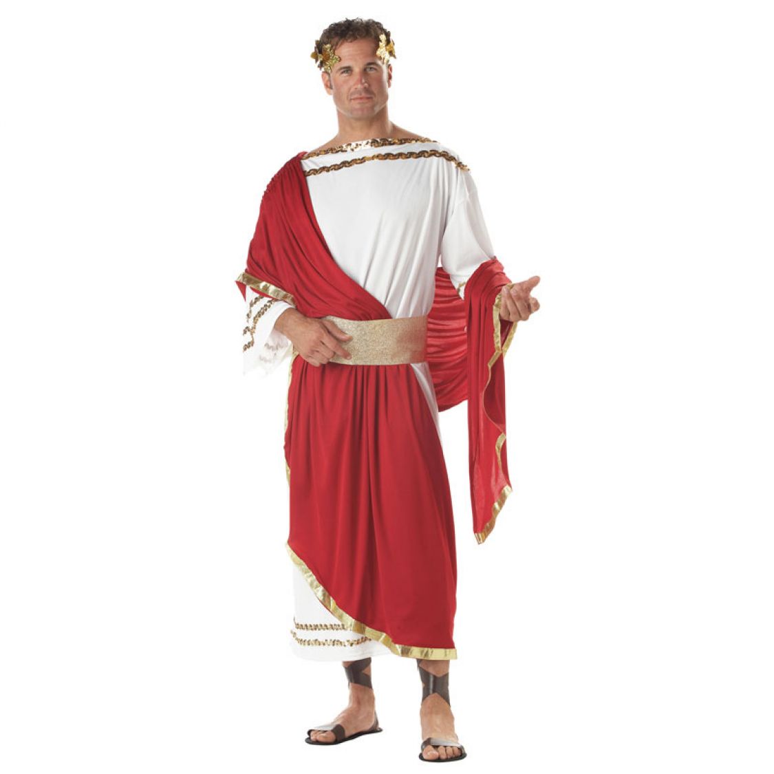 Ce Costume de César est un costume pour adulte proposé en taille unique . Grâce à ce déguisement devenez l'empereur César le temps d'une soirée. Vous allez régnez sur tous les Romains de la soirée à thème Gréco-Romain avec ce superbe déguisement composé d'robe est de couleur blanche à manches longues évaseés ornées de liserés à sequins dorés, d'une écharpe de couleur bordeaux longue à aposer sur vos épaules, d'une large ceinture or et pour donner la touche finale une couronne de laurier dorée.