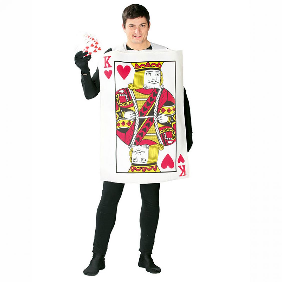 Ce déguisement carte à jouer est un costume pour adulte, est une tunique sur laquelle figure le Roi de coeur, maitre du jeu de carte. Cette tunique de forme rectangle, est en mousse souple sur le devant, ce qui lui permet un bon maintien tout en étant légère. Ce déguisement Roi de coeur est original et sera idéal pour une soirée à thème Casino. Grâce à ce déguisement humoristique, vous mettrez en avant tous vos atouts pour toutes les soirées déguisées .