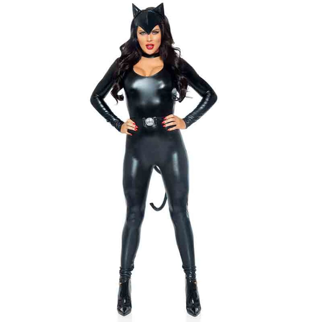 Avec ce Magnifique déguisement rappellant la célèbre Catwoman, héroïne de fiction créée par Bob Kane et Bill Finger, vous allez etre très sexy pour assister à une soirée déguisée. Ce déguisement Cat black est composé d'une combinaison simili cuir noir brillant avec une queue de chat intégrée, d'une coiffe noire avec oreilles et d'une ceinture noire avec une grosse boucle argent. La combinaison est largement décolletée et se ferme à l'aide d'un scratch dans le cou et d'une fermeture éclair. Incarnez la célèbre justicière Catwoman lors de vos soirées à thème super-héros.