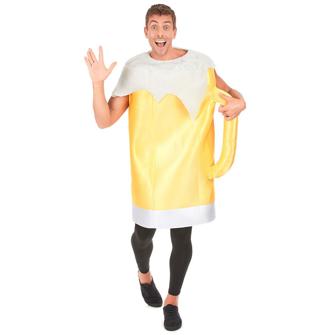 Ce Déguisement Chope de Bière pour adulte comprend une combinaison représentant le traditionnel verre dans lequel on boit la Bière. Ce déguisement est composé d'une tunique de couleur jaune et blanche qui recouvrira le haut du corps, qui repésente la chope de bière bavaroise avec sa poignée. Ce costume très drôle, sera idéal pour faire de vous le plus insolite de vos soirées déguisées ou à thème, particulièrement pour la fête e la bière ou la Saint Patrick