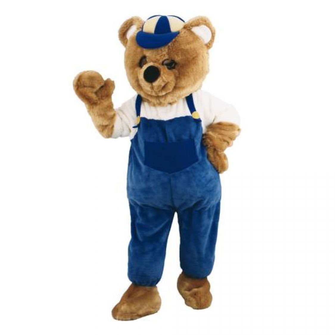 Mascotte ours bricoleur très confortable, très légère et confectionnée dans un tissu en imitation fourrure de très bonne qualité.
