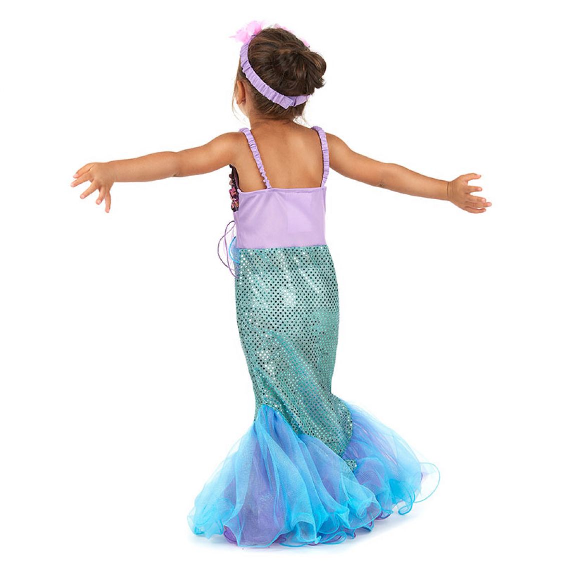 Faites de votre fille la plus jolie des créatures des mers, avec ce joli déguisement de sirène. Plongez dans le monde marin en habillant votre princesse avec cette jolie robe à sequin, aux couleurs de l'océan. Votre poupée pourra se vétir de ce costume sirène pour assister à une fête déguisée pour pour etre la gagnante du concours de Pourim.