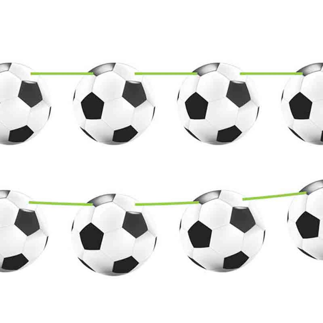 Avec cette guirlande , composée de ballons en carton, vous allez faire régner une ambiance football ! Chaque ballon de foot en carton mesure 22cm de diametre, Les ballons de footballsont reliés par un ruban satiné vert comme du gazon. La guirlande foot mesure 10 metres. Vous pourrez utiliser cette guirlande football pour toutes vos soirées match entre amis, votre soirée à thème sport ou foot.
