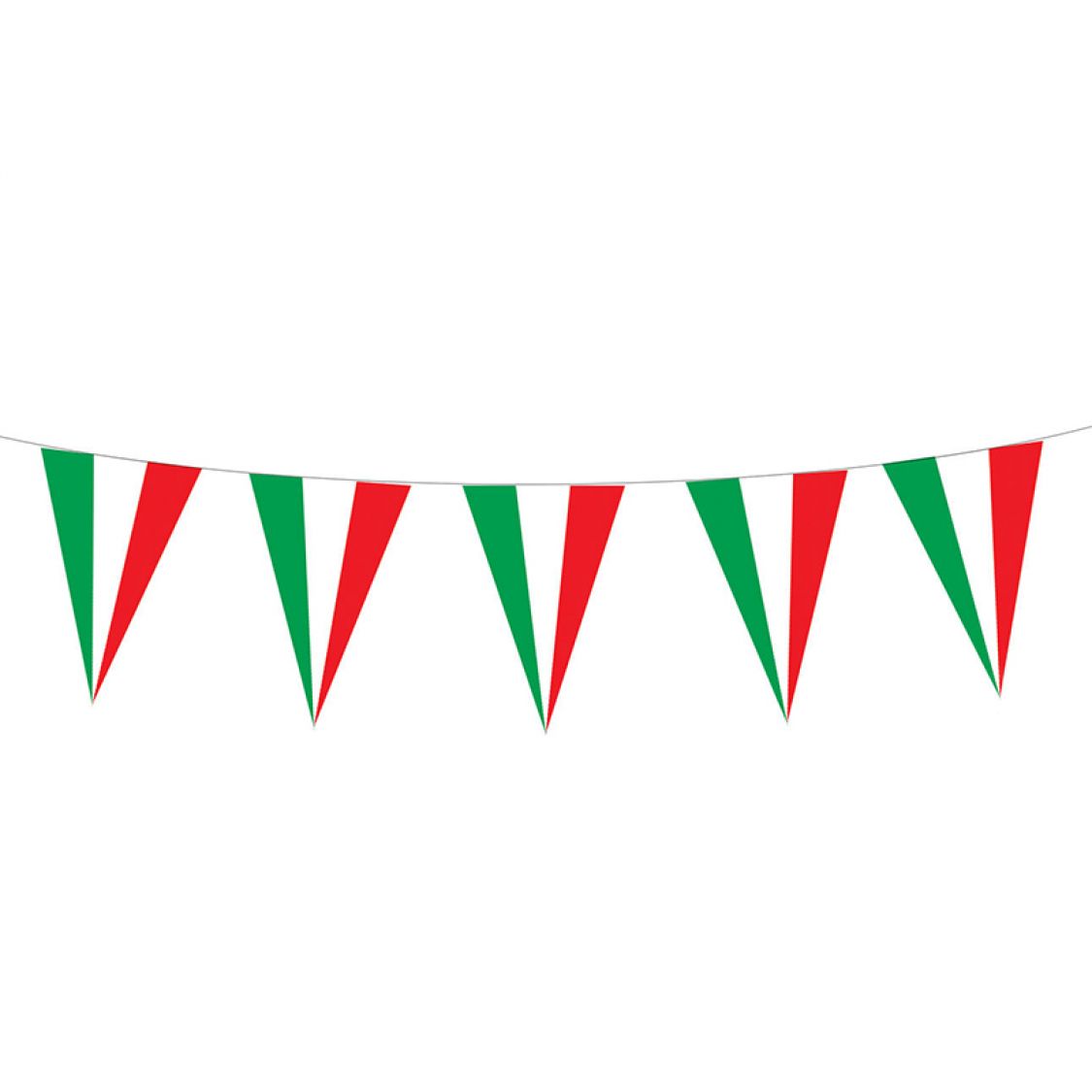 Cette guirlande fanions est aux couleurs de l'Italie. Il s'agit d'une guirlande plastique avec des fanions triangles d'environ 5 metres de long, les fanions sont de couleurs vertu, blanc, rouge qui mesurent chacun 21 cm de large et 30 cm de haut. Ces petits triangles à l'effigie de l'Italie, vous permettront de décorer tous vos espaces, soit pour jouer les supporters pour toutes les compétitions où l'Italie est représentée. Cette guirlande de l'Italie pourra aussi vous servir à orner tous les évènements nationaux, ou vos soirées à thème Italien