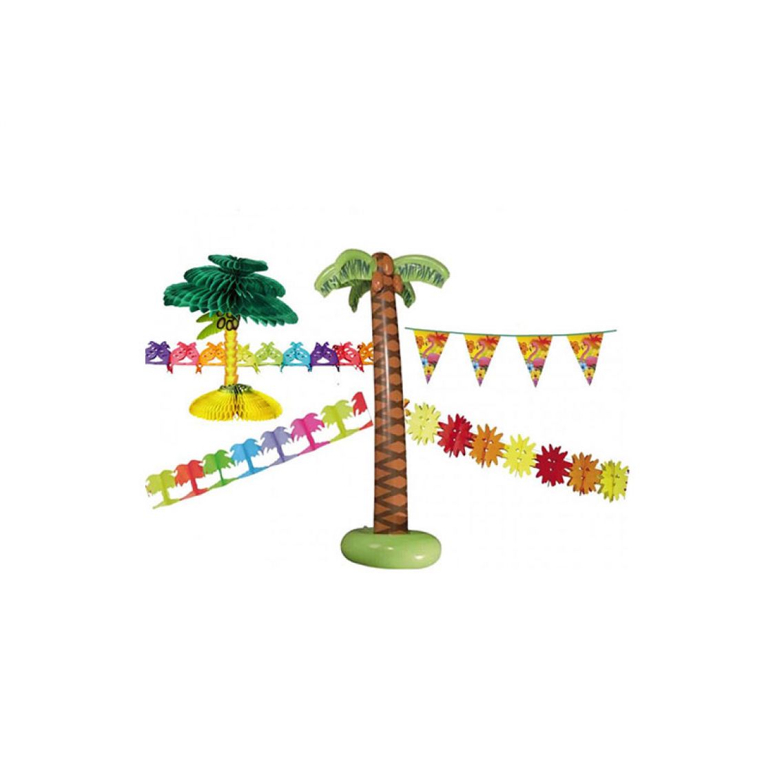 Composition : 1 Guirlande palmier 4 m,1 Guirlande soleil 4 m, 1 palmier papier alvéolé 48cm, 2 guirlandes Hibiscus plastique 6 m , 1 guirlande perroquet 3m, 1 Cocotier gonflable 1.80 cm