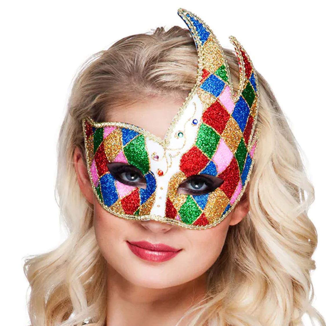 Ajoutez une touche originale et de mystère à votre tenue de carnaval avec ce somptueux loup vénitien arlequin. Inspiré par les masques de Venise, ce masque combine des finitions coloré pour un effet scintillant. Idéal pour les soirées à thème, les bals masqués, les carnavals ou les événements costumés, il apporte une touche raffinée et sophistiquée. Conçu pour s'adapter confortablement à votre visage, il se porte facilement grâce à son ruban de satin. Faites sensation lors de votre prochaine fête avec ce loup vénitien arlequin qui saura vous transformer en un véritable personnage de la noblesse vénitienne.
