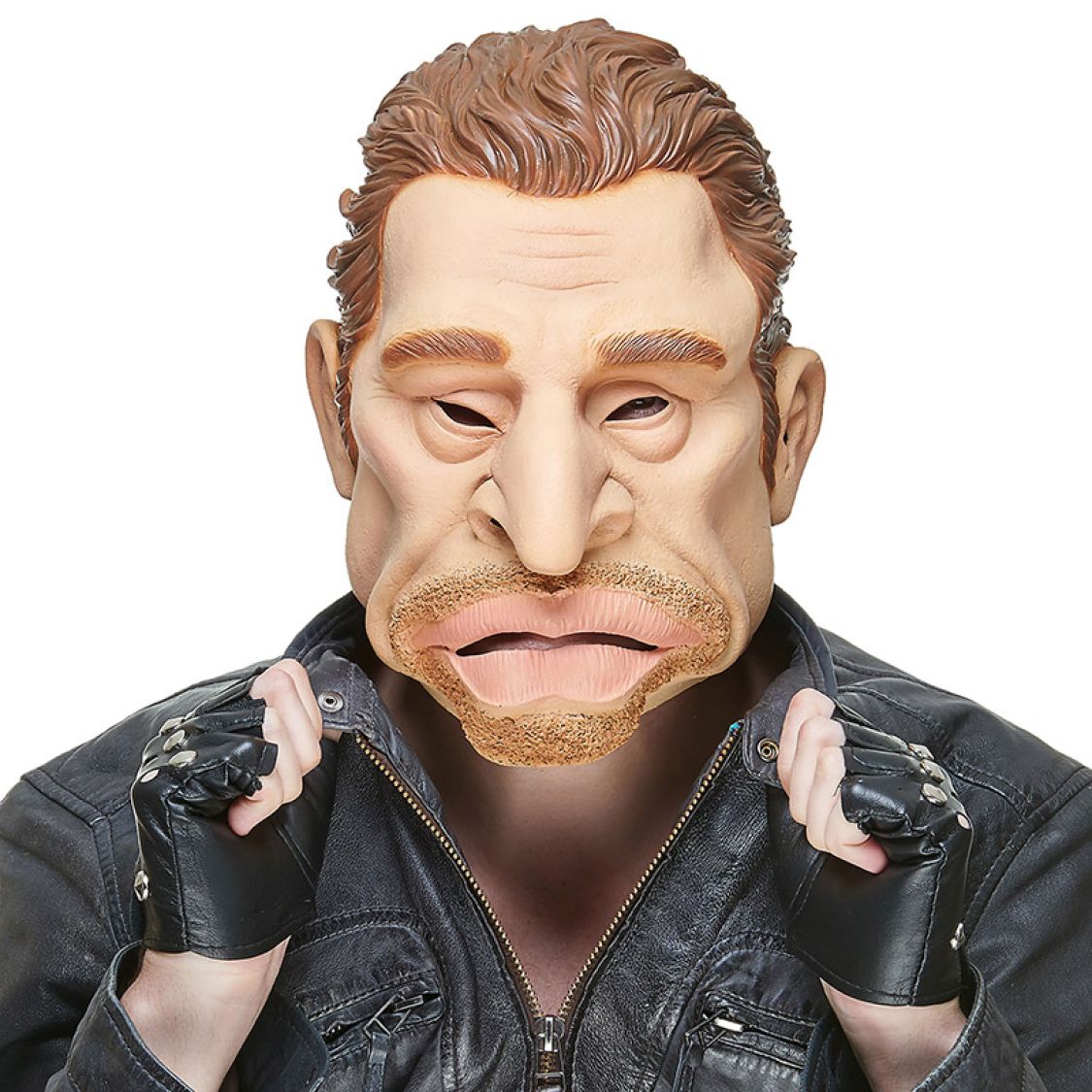 Ce masque en latex est un masque pour adulte , il est intégral et s'enfile comme une cagoule. Ce masque adulte est un masque humoristique qui représente le visage du célèbre rockeur français : Johnny Hallyday. Les traits de l'idole des jeunes sont accentués , ce qui le rend plus réaliste et ressemblant ! Pour un parfait confort au niveau des les yeux, des narines, de la bouche et des oreilles c'est ajouré. Avec ce masque vous ferez revivre le chanteur des années 60, et vous aller Allumer le feu à toutes vos soirées festives ou pour un spectacle.