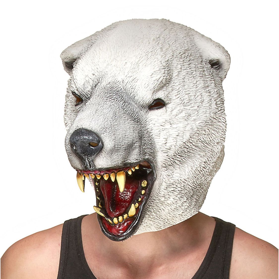 Vous organisez une soirée à thème animaux, nous vous proposons ce masque latex vous permettra de vous transformer en ours polaire. Ce masque d'ours est un masque pour adulte, réalisé avec du relief représentant les poils d'ours, il a une gueule béante dévoilant des dents sales et pointues et des babines luisantes. Ce masque tête d'ours est très réaliste avec ses yeux et ses oreilles. Ce Masque ours blanc est un masque intégral, qui s'enfile comme une cagoule. Il a été conçu avec des trous au niveau des yeux et du nez pour un bon confort.