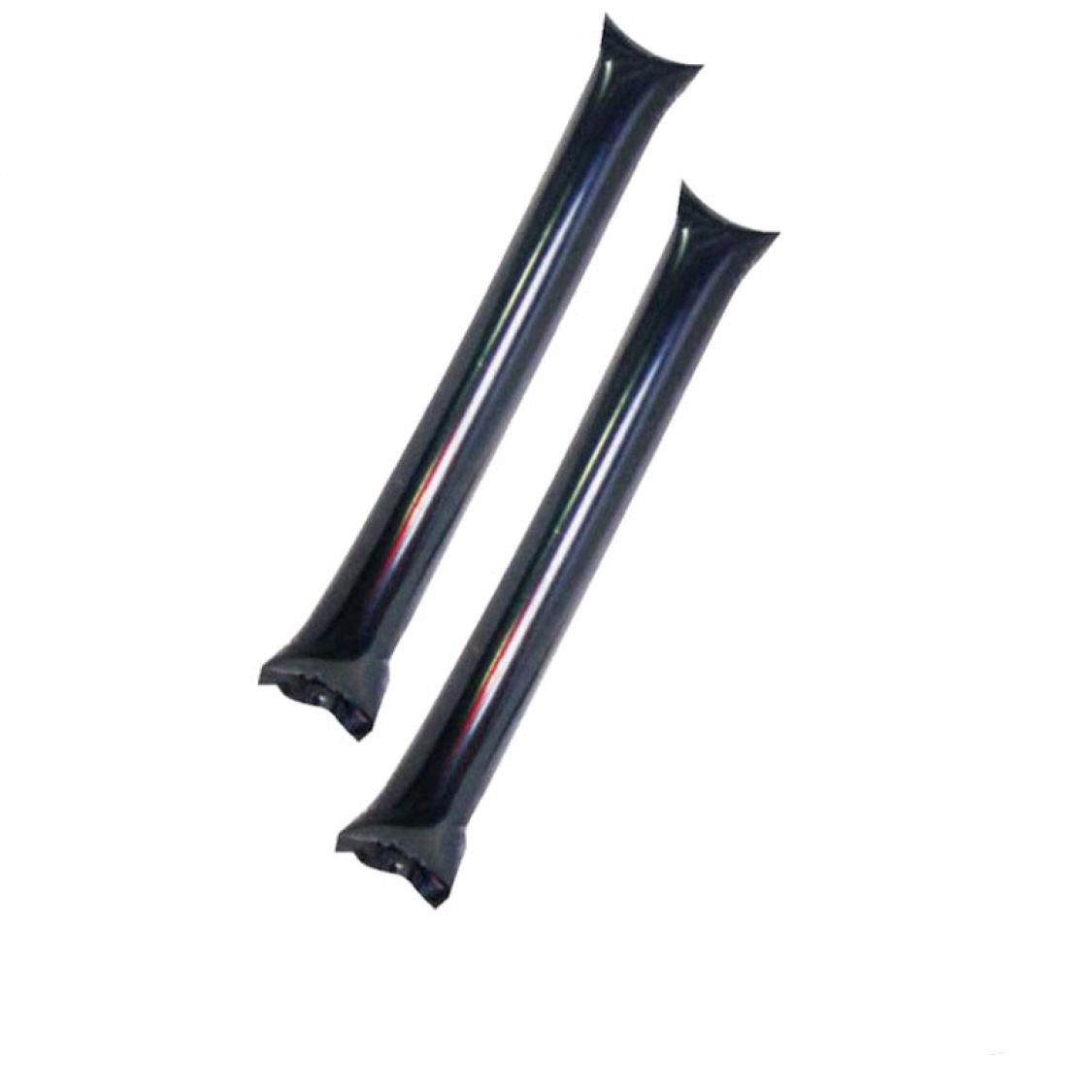 Avec cette Paire de clap clap gonflable en plastique noir vous aller pouvoir faire du bruit pour encourager les jouer dans les stades, supporter vos équipes sportives et mettre de l'ambiance dans tous les événements. Ces gourdins noirs gonflables sont vendus par paire, et ils sont livrés avec une petite pipette qui permet un gonflage rapide et facile