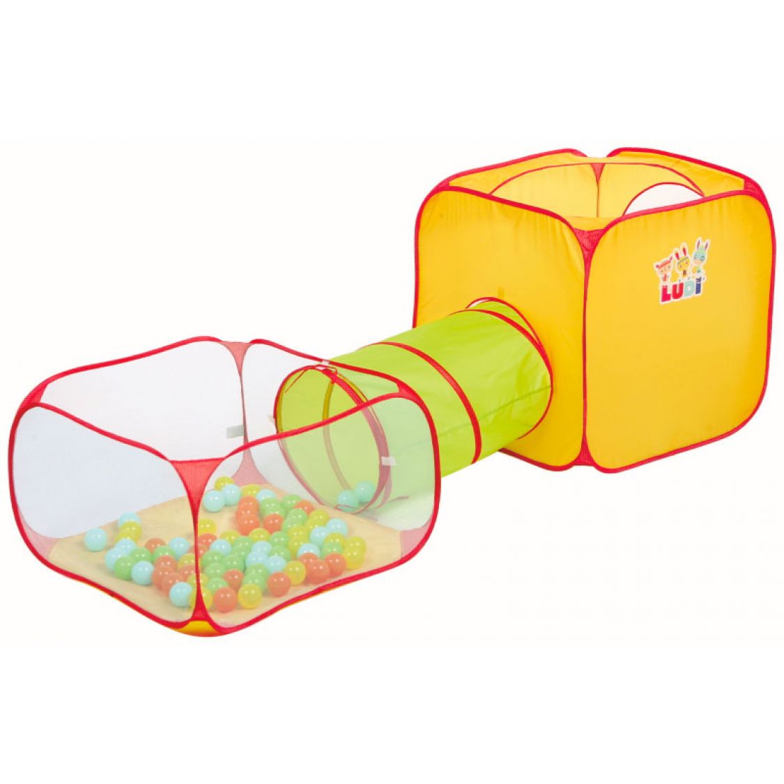 Le produit : 3 espaces pop-ip avec tunnel et aire de jeu à balle
