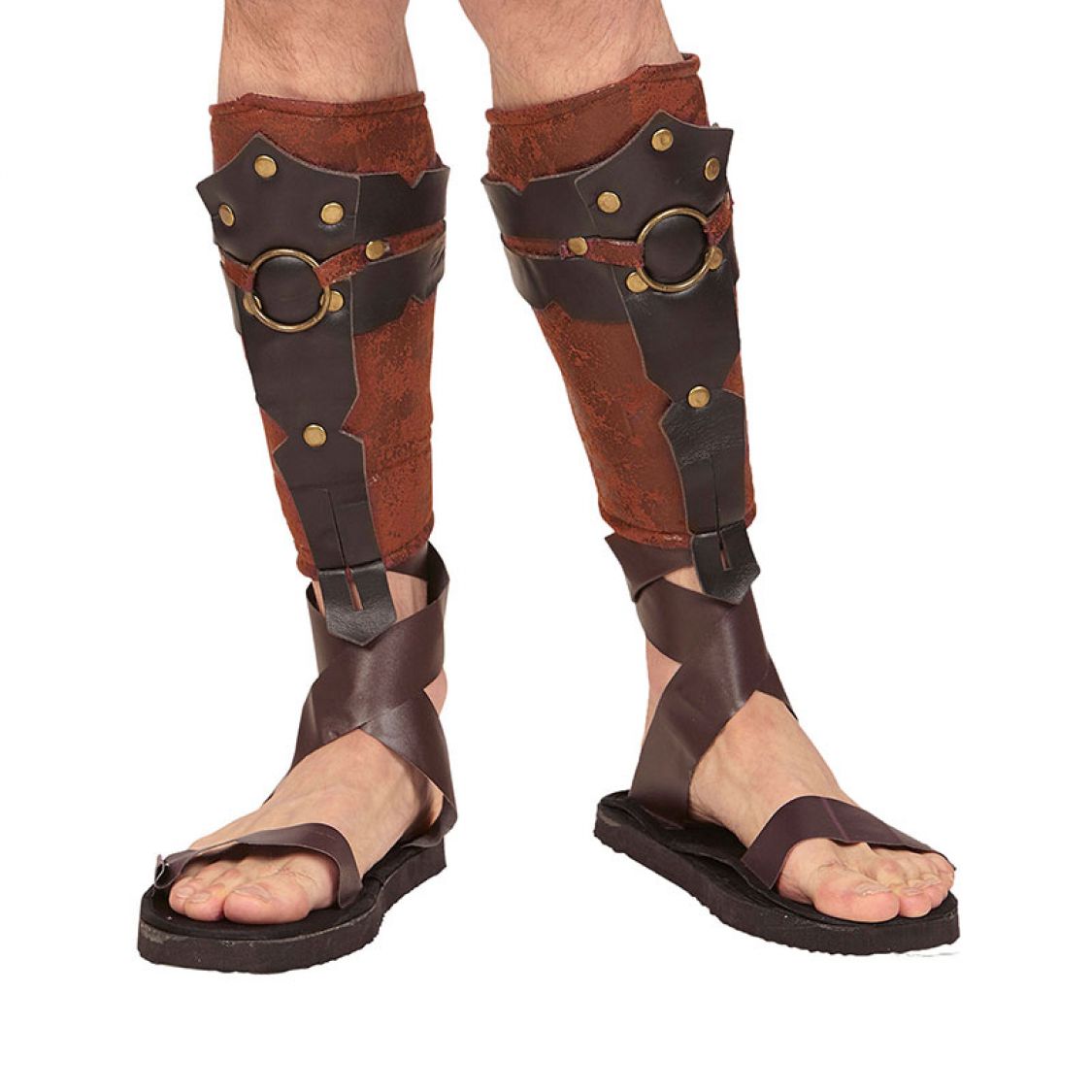 Ces protège-tibias Soldat Romain sont en simili cuir marron, avec des lanières marrons et des rivets dorés. eCette paire de protege mollet sera idéale pour compléter un déguisement de gladiateur romain.Cet accessoire sera la touche finale qui agrémentera vos déguisement gréco-romain, ou de césar, ou encore tout autre personnage de l'antiquité. Prête pour entrer dans les Arènes.