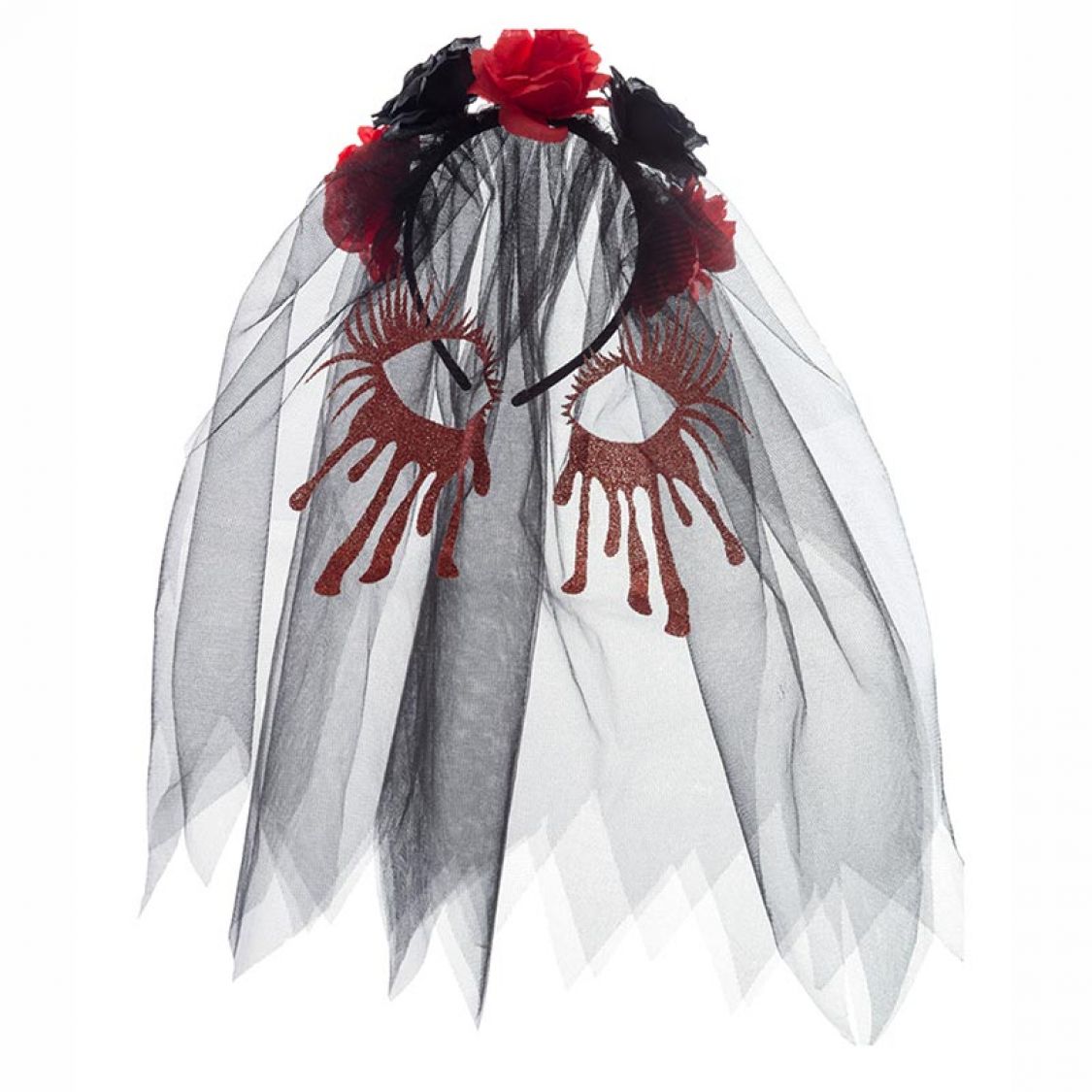 Nous vous proposons cet accessoire qui vous permettra de garder une part de mystère, pour assister à toutes les fêtes d'halloween ou à thème Horreur. Ce serre-tête de roses et voile ensanglanté est un accessoire pour femme, qui apportera une touche original à toutes vos tenues pour participer à une fête sur le thème Dia de la muerte. Ce serre-tête est décoré de roses rouges et noires sur le haut et d'un voile noir transparent pour couvrir votre visage. Le voile est o imprimé de faux sang qui donnera l'illusion que du sang cule sur vos joues. Ce serre-tête apportera une touche d'élégance dans l'univers sombre d'Halloween !