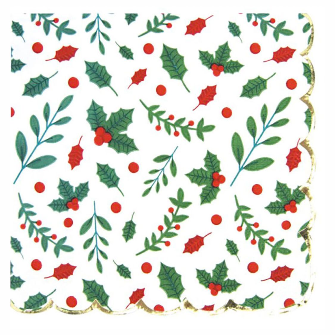 Ces serviettes de table sont de couleur Blanche imprimées avec du houx, qui est un des symboles de Noël. Egayez vos tables de fête de fin d'année avec ces serviettes jetables en papier , elles pourront étre utilisées pour vos repas d'entreprise ou vos soirées en famille. Décorez vos tables et buffets de Noël pour accueillir vos invités dans la féérie de l'hiver, et attendez ensemble la venue du père noël.