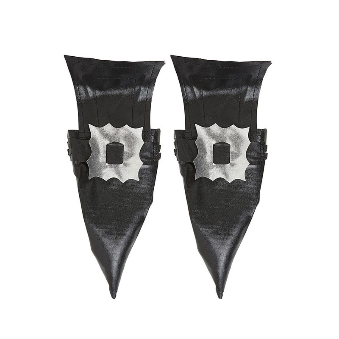 Pour Halloween transformez vous en une vraie sorcière de la tête aux pieds ! Avec ces sur-chaussures effet cuir vous apporterez un détail important à votre costume de sorcière. De forme pointue à l'avant du pied, ces surchaussures de sorcière possèdent une large languette noire et fausse boucle argentée, elles se maintiendront facilement au dos du talon de votre chaussure grâce à 2 élastiques.